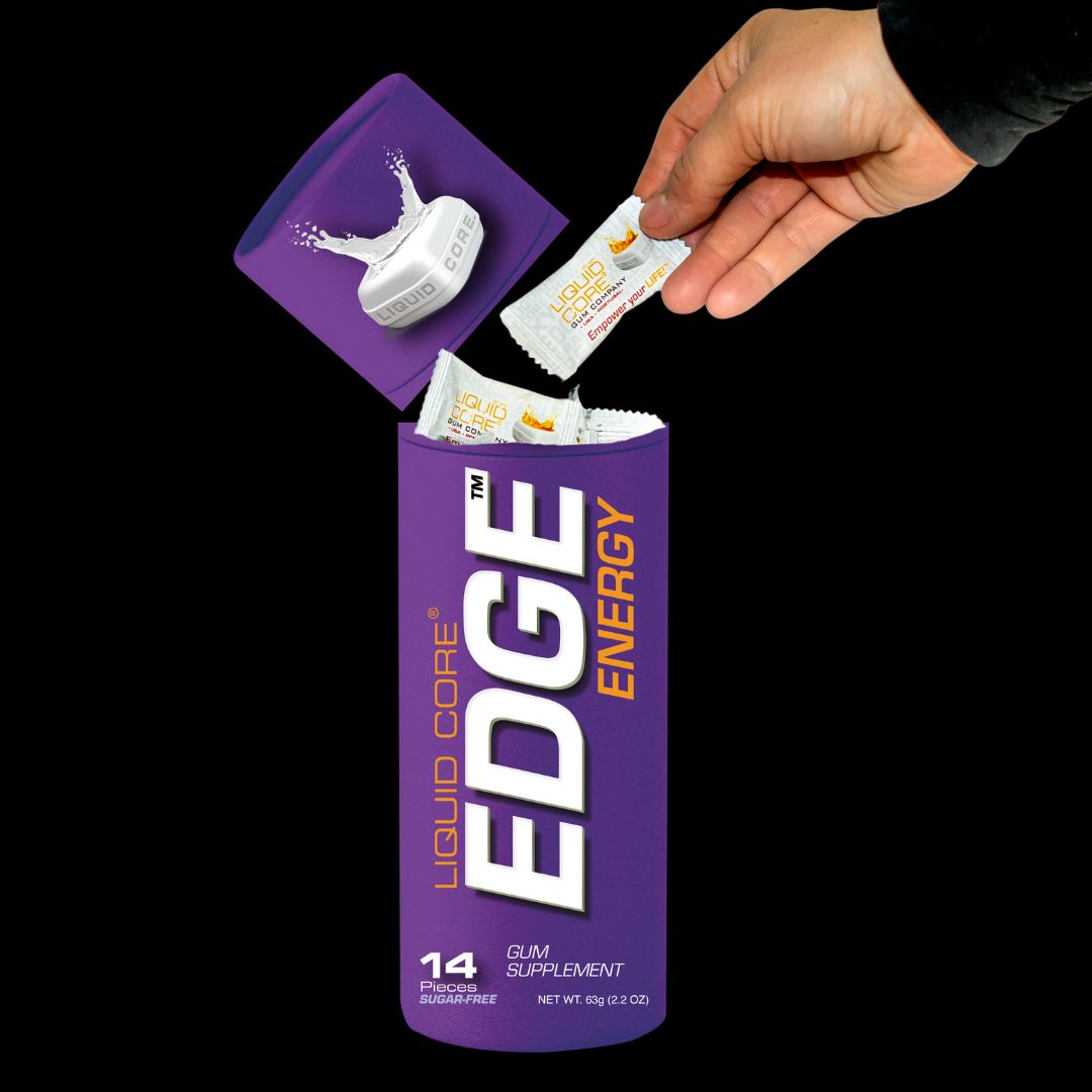 After perfecting the liquid center delivery system, we realized that we do not need to pack in as much caffeine as energy drinks or other energy gums in order to get the EDGE we were looking for.
